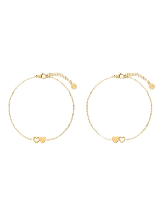 ARMBANDEN SET TWEE HARTJES GOUD
