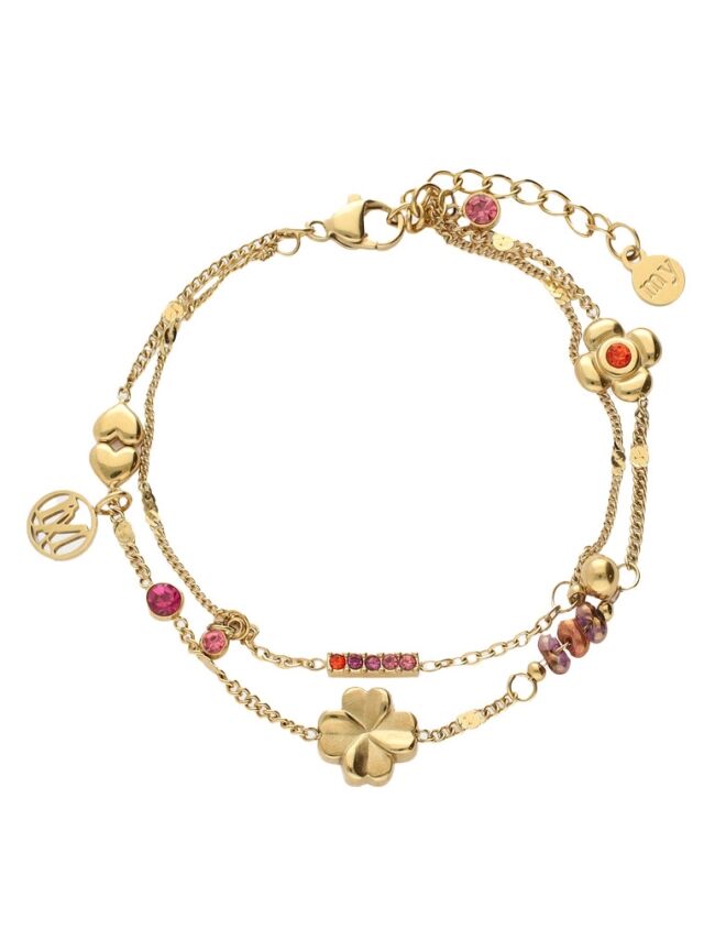 Shine bright like a dreamchaser! Deze dubbele armband van My Jewellery is een echte eyecatcher met zijn kleurrijke strass steentjes en speelse bedels. Gemaakt van premium stainless steel, dus 100% waterproof en krasvast, ready for all your moments. De mix van kleur en betekenis maakt dit sieraad perfect om te geven als cadeau of te dragen als reminder van jouw eigen journey.