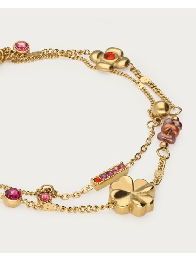 DUBBELE ARMBAND MET MULTI STRASS EN BEDELS