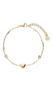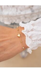 Follow your heart! Deze armband met hartjes bedel en strass is de perfecte minimalistische basic voor in jouw sieraden stash. Het armbandje heeft tubes verdeeld over het kettinkje wat 'm alles behalve saai maakt. Combineer dit item met een mooie ring en basic bangle voor een leuke party om je arm!