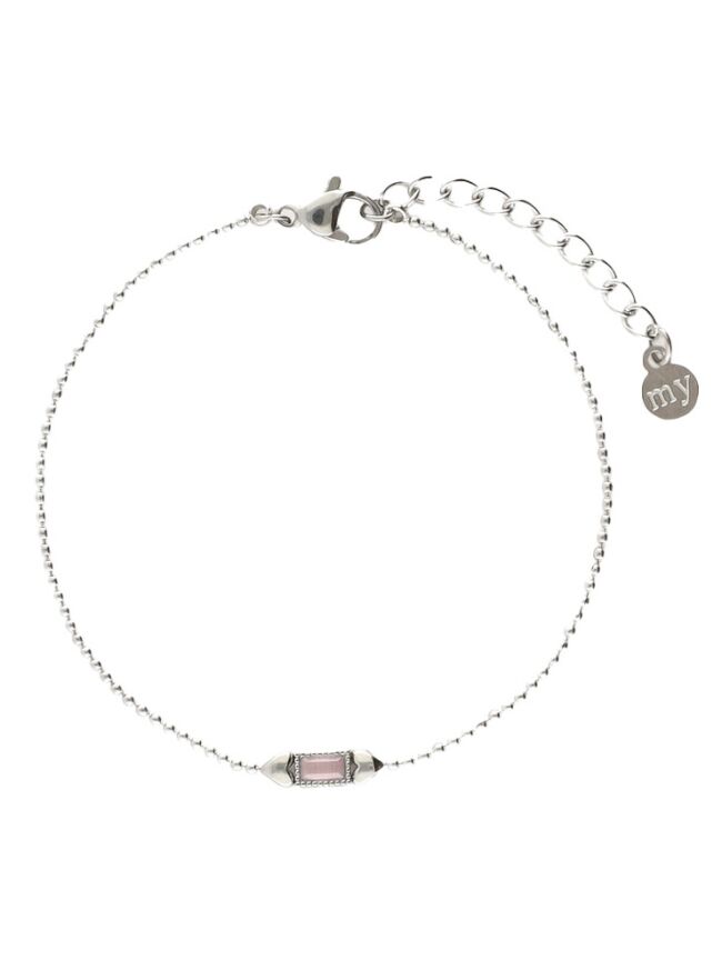 Soft touch, strong statement. Deze armband met lichtroze steen van My Jewellery straalt vrouwelijke kracht uit met een delicate twist. De combinatie van de zachte kleur en het verfijnde design maakt dit sieraad perfect voor iedere gelegenheid. Gemaakt van premium stainless steel en 100% waterproof, dus ready to last a lifetime. Geef als cadeau of draag ‘m als reminder: celebrate yourself, every day!