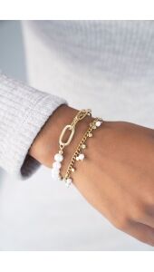 Create your own bracelet party! Deze korte armband met muntjes en parels is ideaal om te combineren met andere armbanden. De armband heeft subtiele muntjes en parels waardoor het er super stijlvol uit ziet!