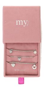 Hoe leuk is deze set van 3 armbanden! De set bestaat uit 3 kralen armbanden die als finishing touch te leuke candy hartjes er aan heeft hangen. De armbanden hebben een stijlvolle en basic look waardoor je de armbandjes perfect met elkaar kunt combineren of juist leuk om te mix & matchen met andere armbanden en sieraden. Scoor snel deze perfecte armbanden set en straal iedere dag!