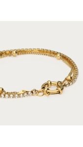 De combinatie van drie verfijnde schakels met sprankelende strass details maakt dit design een echte eyecatcher. Mix and match met de matching ketting voor een complete set. Ben jij klaar om te stralen van bar tot dansvloer of late-night dinner tot afterparty? Want niets schittert zo fel als een nacht vol magie en niets voelt meer als een viering dan een schitterende sterrenhemel!