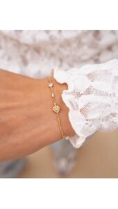 Dit armbandje met minimalistische bedeltjes & strass past perfect in jouw sieraden stash. Het kettinkje heeft kleine tubes wat 'm een extra leuke touch geeft. Combineer 'm met andere armbandjes om een speelse party te creëren.