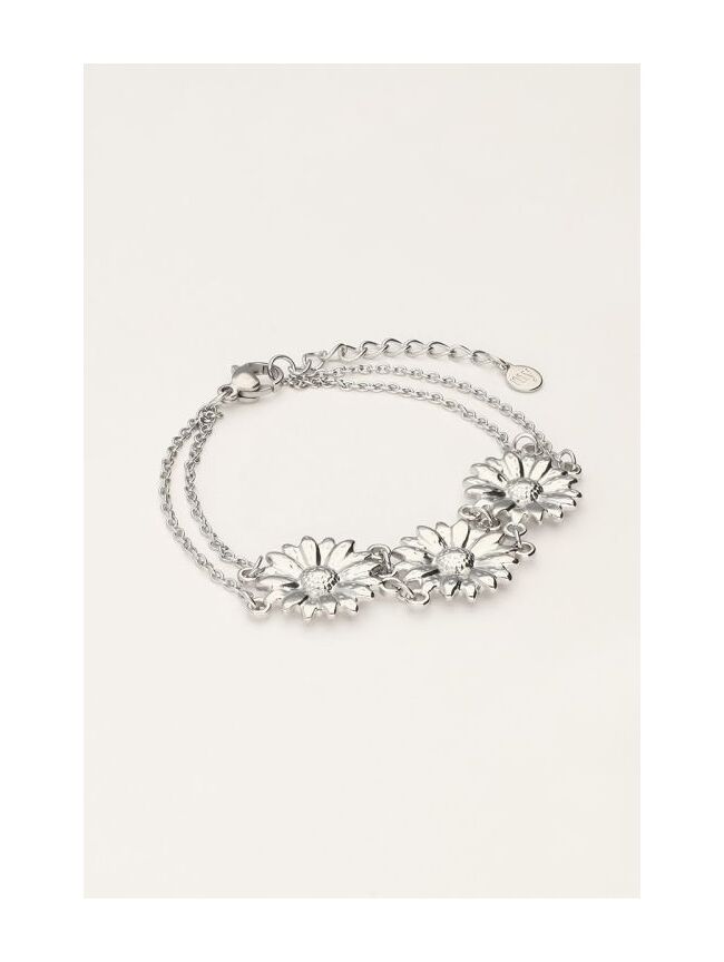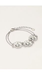 DUBBELE ARMBAND MET DRIE BLOEMEN ZILVER