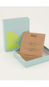 Blijf verbonden met elkaar met deze armbanden set van de stay connected collectie. Zet jouw lievelingspersoon in de belangstelling en geef deze leuke armband als cadeau! Gegarandeerd dat jij goed zit met dit mooie presentje! Wie ga jij verrassen? Te shoppen in goud en zilver!