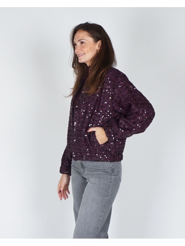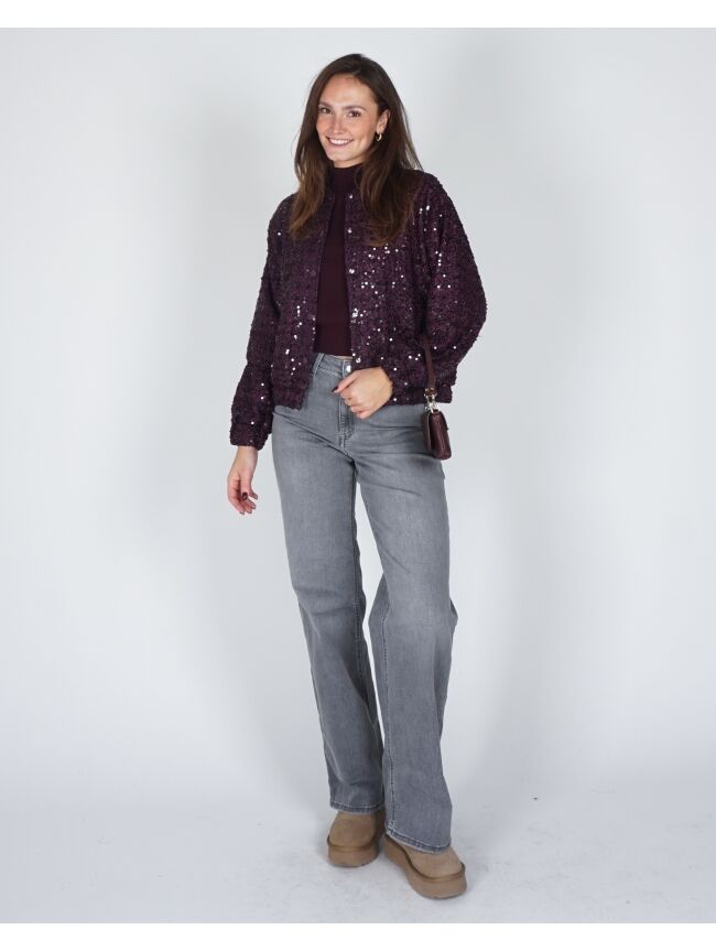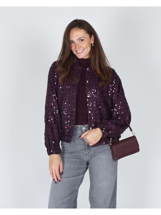 Het paarse bomber jacket met pailletten van My Jewellery is een echte eyecatcher die iedere outfit naar een hoger level tilt. De rijke paarse kleur in combinatie met de sprankelende pailletten geeft dit jasje een feestelijke uitstraling, perfect om jouw moment of celebration kracht bij te zetten. Draag de jas over een jurk of matching short en je bent ready to shine. What are you celebrating today?