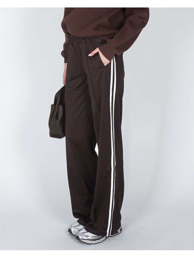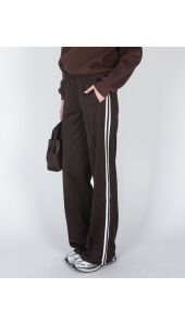 BRUINE WIJDE JOGGER BROEK MET STREPEN