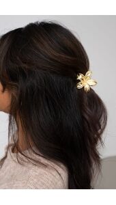 Bloom it on! Haaraccessoires zorgen ervoor dat jouw look van top tot teen helemaal compleet is. Deze goudkleurige haarclip met bloem fleurt niet alleen je haar, maar ook gelijk je hele look op. Voeg dit prachtige item snel toe aan je shoppingbag and make a statement!