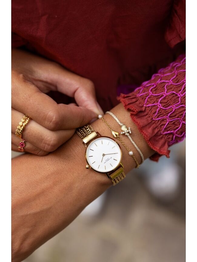 Tik tok, tik tok! Dit horloge is perfect voor elke outfit en helemaal on-trend. Dit horloge heeft mooie schakelkettingen in de band, waardoor dit een super mooi sieraad is.