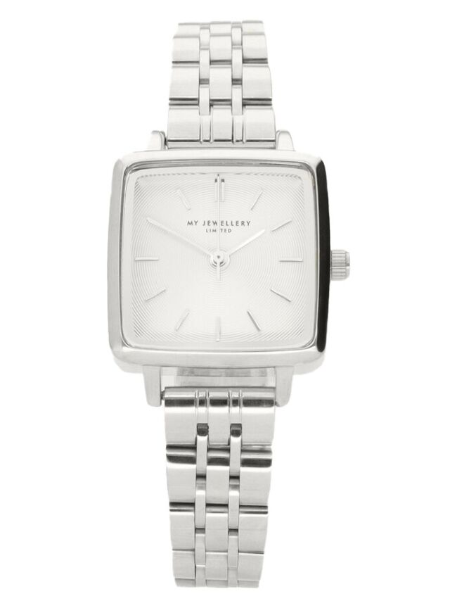 VIERKANT HORLOGE MET SCHAKELBAND ZILVER