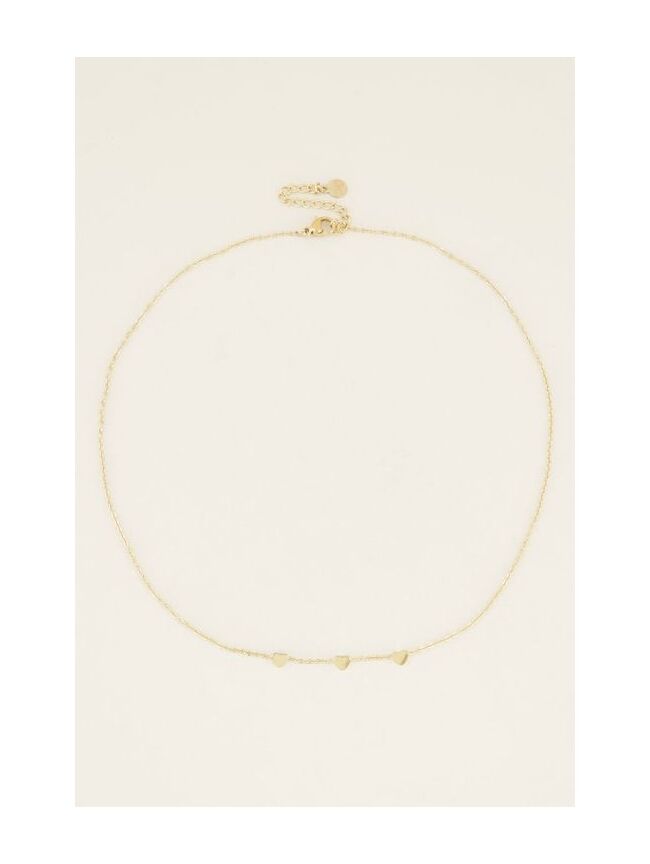 Dit schattige minimalistische kettinkje met drie hartjes is perfect om je look een subtiele touch te geven. Het kettinkje is super om je eigen necklace party af te maken of om cadeau te geven.
