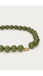 Deze grove kralenketting in olijf groene kleur is een echte statement piece die je outfit direct een boost geeft. De chunky kralen zorgen voor een speelse en trendy touch. Draag de ketting solo voor een opvallende look of mix & match met andere sieraden voor de ultieme layered vibe. Perfect voor een festival, zomerse dag of gewoon wanneer je wat extra kleur wilt toevoegen.