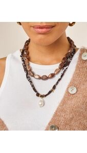 KETTING MET OVALEN KRALEN DONKERBRUIN