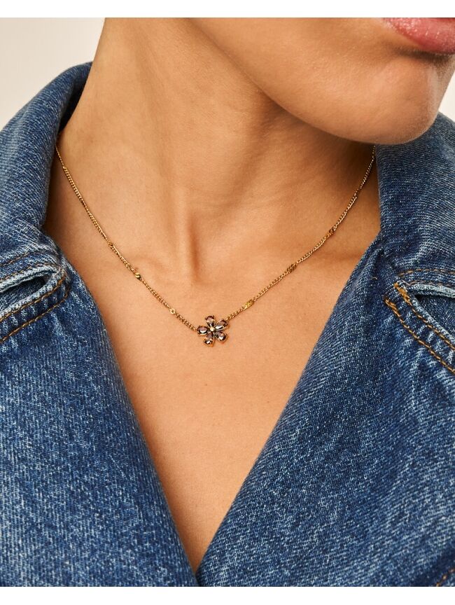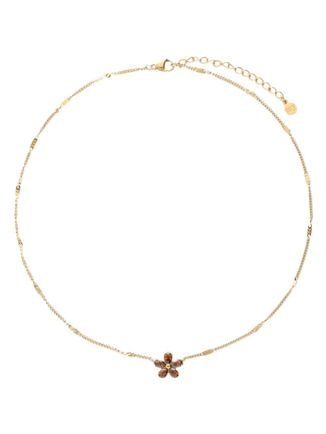 Voeg een vleugje glamour toe aan je daily look met deze ketting van My Jewellery. De bruine strass bloem vangt het licht op een unieke manier en straalt pure power uit. Het verfijnde design maakt het sieraad perfect om solo te dragen of te combineren met andere favourites. De minimalistische ketting is gemaakt van premium stainless steel: 100% waterproof & forever beautiful. Deze ketting is pure sparkle.
