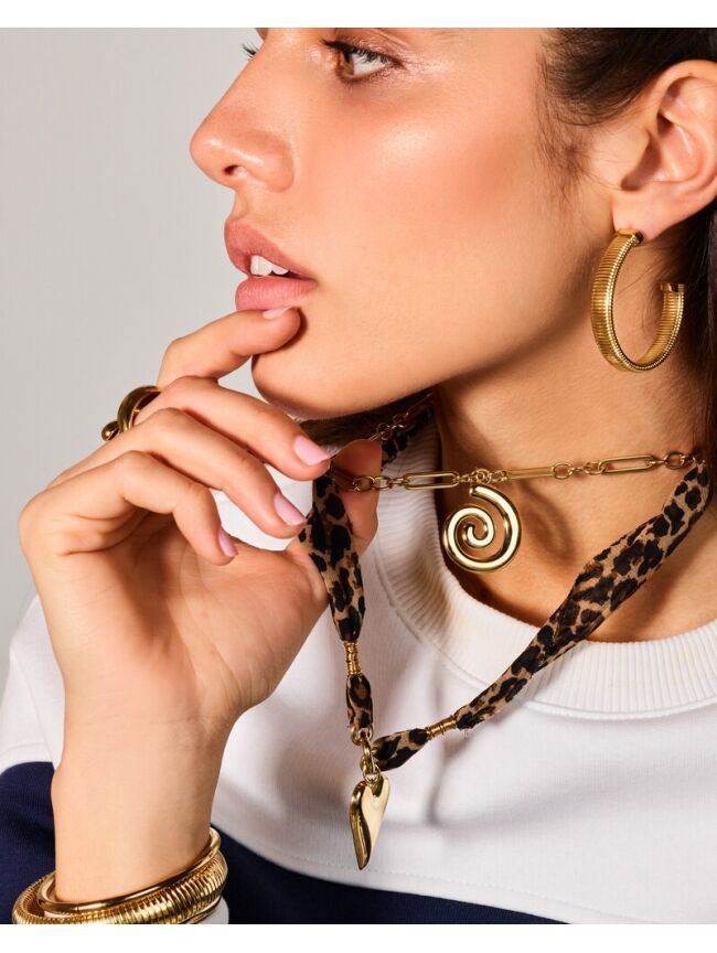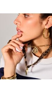 Leopard love! Deze on-trend ketting is een echte statement om jouw nek. De ketting heeft een echte stoere look door de combinatie van de stoffen cord met ringetjes en bedel. Stijl dit item met een simpele outfit of ga all-in met panterprint. Ook leuk om te combineren met schakelkettingen. Heb jij dit item al in je shoppingbag?