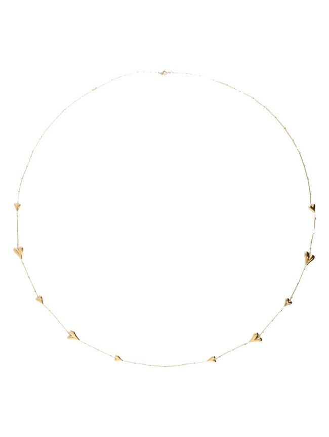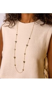 LANGE KETTING MET BOLLETJES EN HARTJES GOUD
