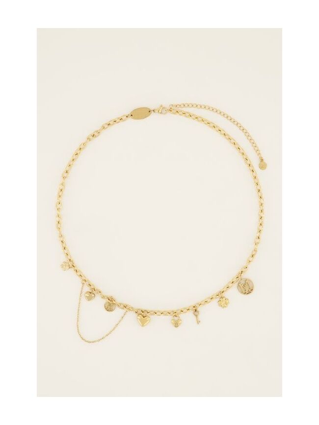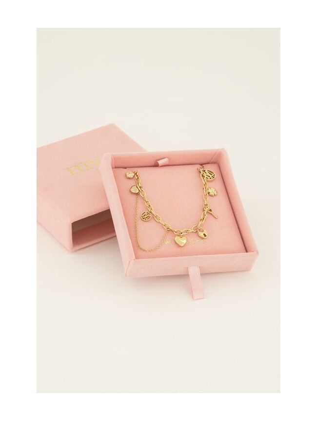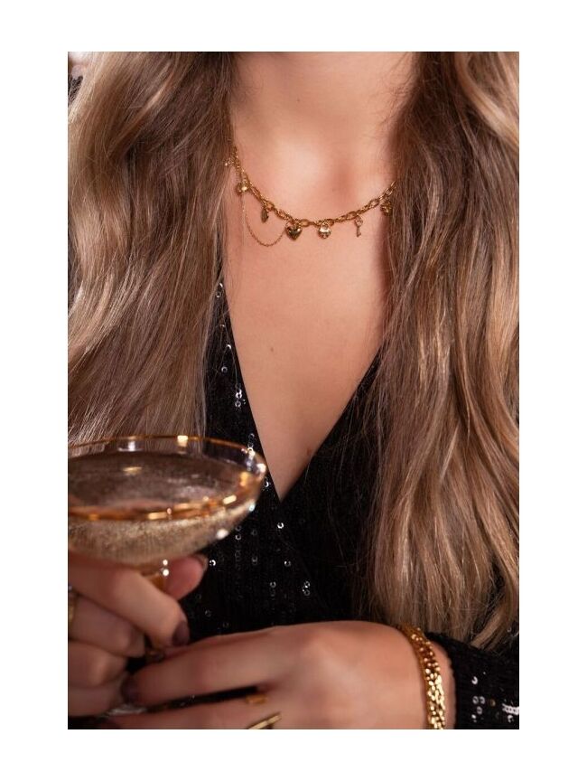From us to you! Deze ketting met bedels is je dagelijkse herinnering aan vreugde en geluk. One of a kind met samengestelde love & luck bedels, die je doen terugdenken aan mooie momenten. De schakelketting wordt geleverd in een luxe gift doosje en is het perfecte cadeau voor een van je geliefde of als aanvulling op je eigen sieradenparty!