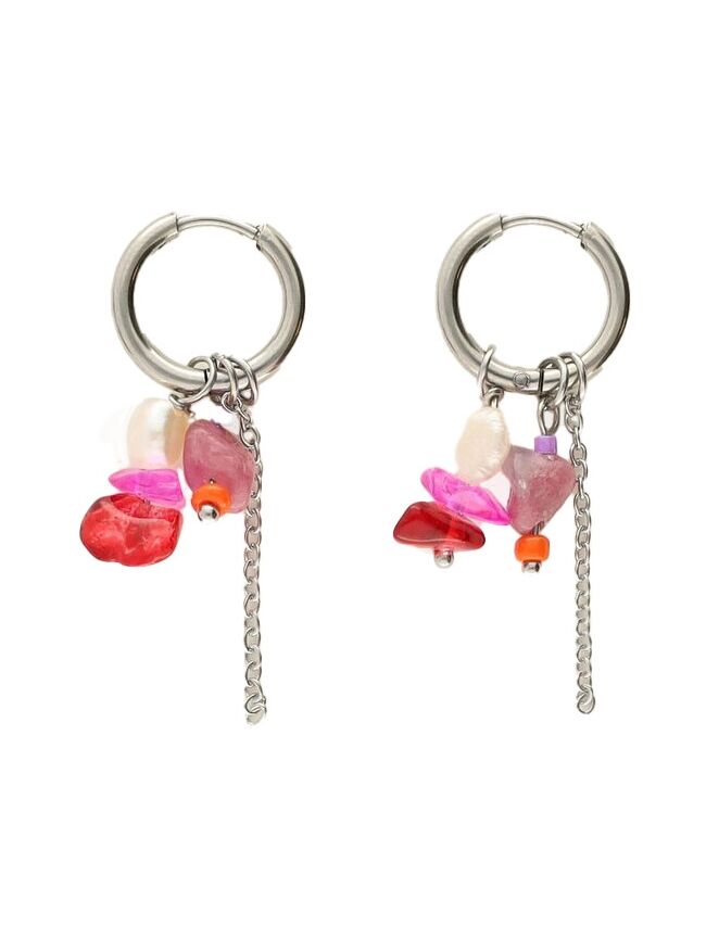 OORBELLEN MET GEKLEURDE STEENTJES ZILVER