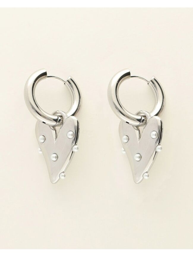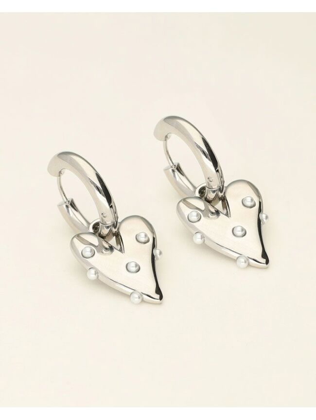 GROTE OORRINGEN MET HART EN PARELS ZILVER