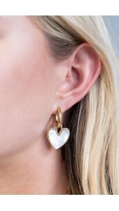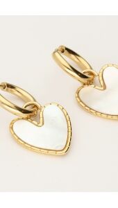 Cuteness alert! Deze oorringen met parelmoer hartje zijn absoluut fashionable. Het glanzende parelmoer geeft dit item een prachtig effect! Door het design zijn ze opvallend maar toch heel leuk te combineren met je favoriete minimalistische oorbellen. Of maak de set compleet met de matching ketting en armband! Hurry and shop!