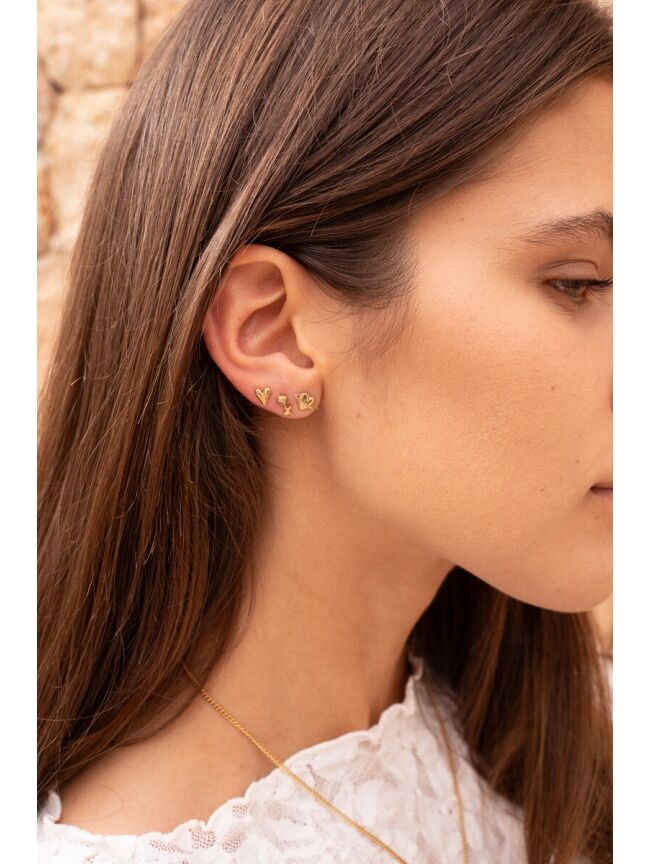 Minimalistisch, maar zeker niet boring! Deze studs hebben een mini hartje en zullen jou een beetje extra liefde geven wanneer je deze draagt. Combineer de oorbellen samen met andere favorieten voor een perfecte ear-party. Hurry and shop.