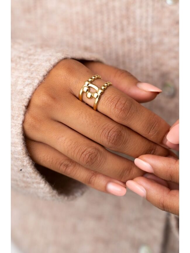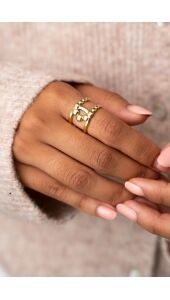 Wij zijn fan! Wij worden instant vrolijk van deze statement ring met mooie structuur details. De statement uiterlijk van de ring maakt het makkelijk om het te combineren met andere ringen en geven het een luxe uitstraling. Zoek niet verder want deze ring is de finishing touch van iedere outfit. Shop now, before it's to late!
