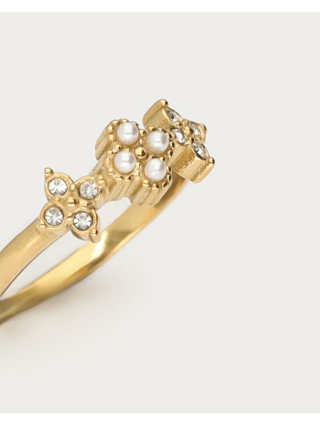 RING KLAVER MET STRASS EN IMITATIEPARELS
