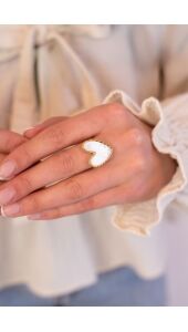 This parelmour heart is absolutely stunning! Deze ring met groot hart heeft een on-trend design wat 'm helemaal fashionable maakt. Het parelmoer in het hart geeft dit sierraad een prachtig effect. Combineer deze statement ring met minimalistische sieraden om een leuke mix te creëren. Of ga voor de matching sieraden. Om welke vinger laat jij dit item shinen?