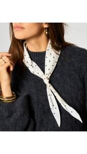 Add a touch of playfulness aan je outfit met deze witte sjaal met zwarte polkadot van My Jewellery. De zachte stof voelt comfortabel aan en de tijdloze print maakt het accessoire een stijlvolle essential. Draag de sjaal in je haar, om je tas of als neck scarf voor een instant fashion upgrade. Ook perfect als gift om iemand te verrassen. Polkadots never go out of style!