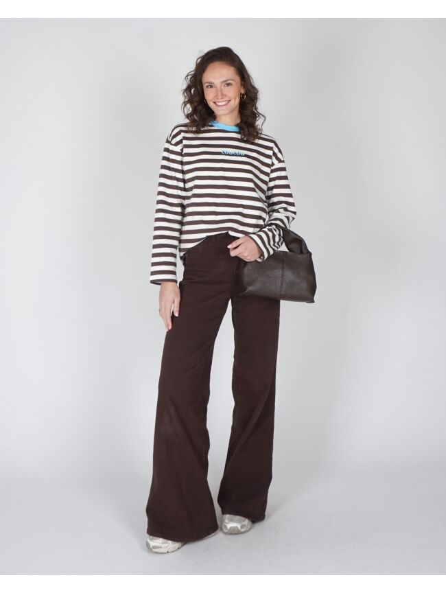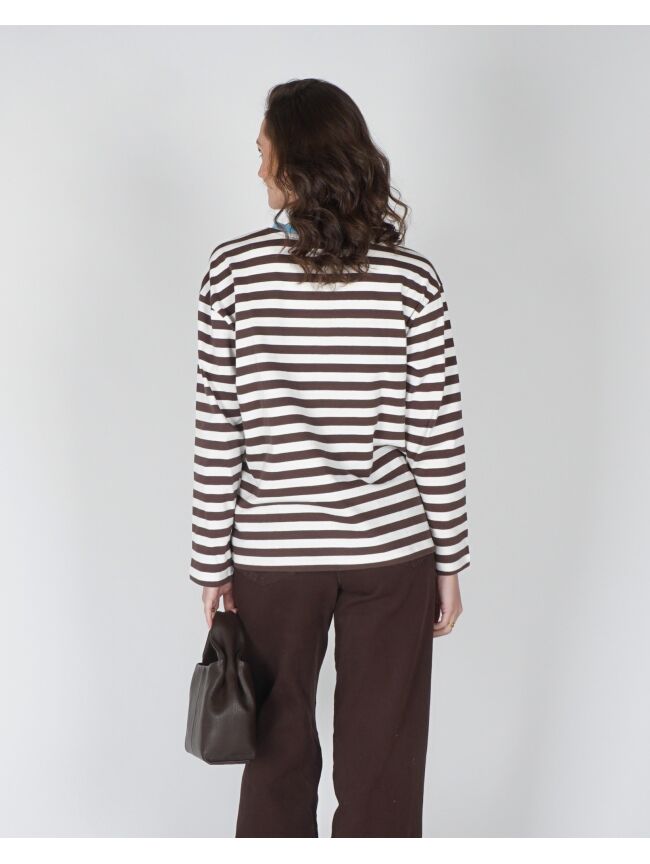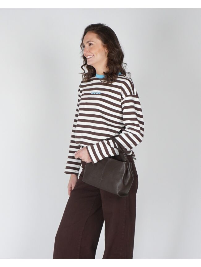 BRUIN GESTREEPT LONGSLEEVE T-SHIRT "COUCOU"