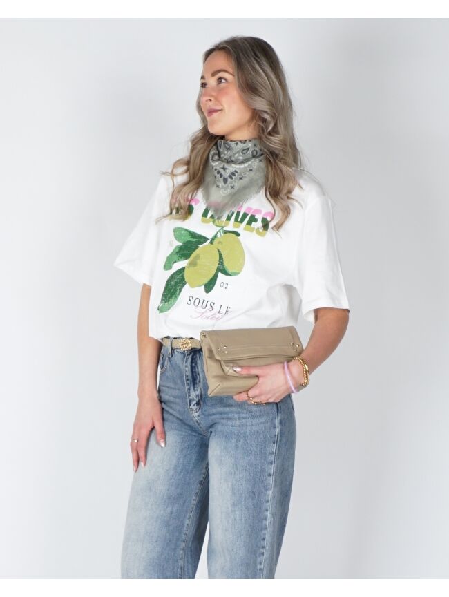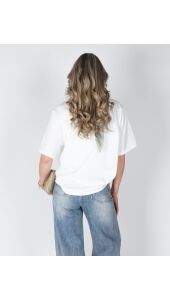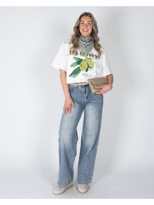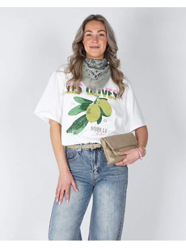 Dit witte T-shirt met de tekst Les olives geeft jouw outfit een speelse French touch. De zachte stof en relaxte fit zorgen voor een comfy feel, terwijl de opvallende print een on-trend statement maakt. Perfect op een jeans of onder een blazer voor een effortless look. Een karaktervol item uit de collectie van My Jewellery. Bonjour good style, vier iedere dag in jouw eigen vibe!