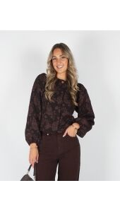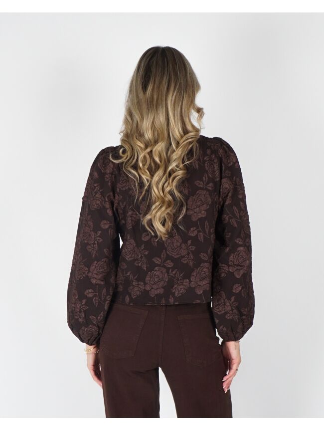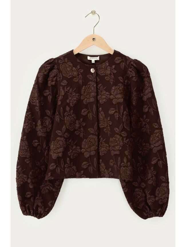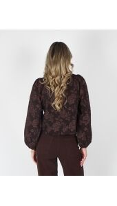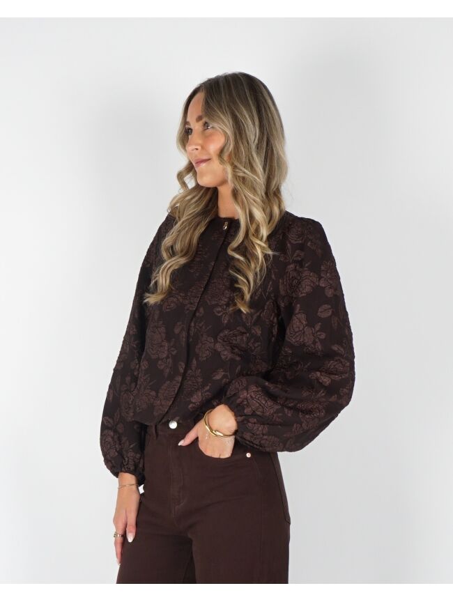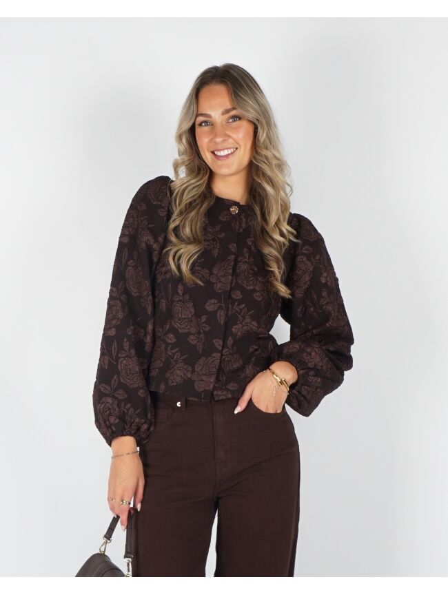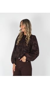 JACQUARD TOP MET LANGE POFMOUWEN BRUIN