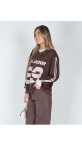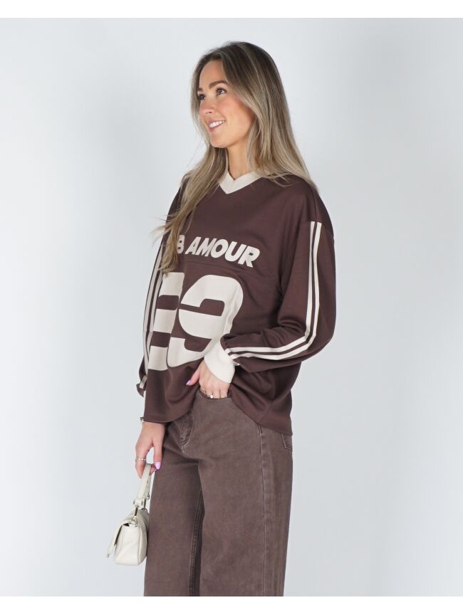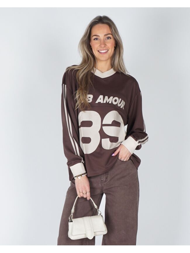 Sporty & stylish vibes only. Deze bruine top van My Jewellery met Club Amour 89 print is dé throwback naar retro sport styles, maar dan met een moderne My Jewellery twist. De zachte stof en wijde fit geven je all day comfort met een confident look. Perfect voor een casual dagje of als gift voor jouw sporty spice vriendin. Ready to join the club?