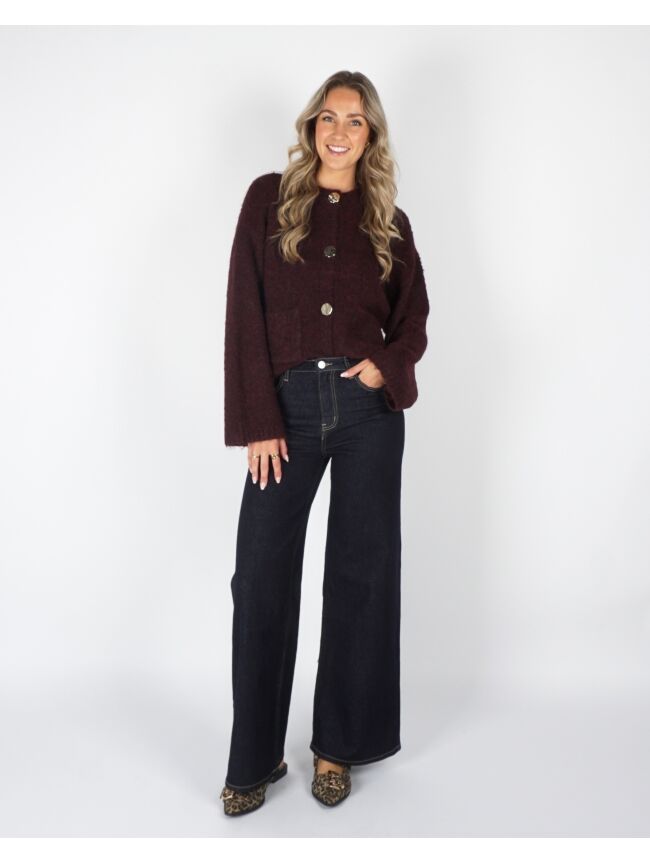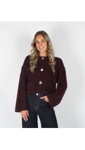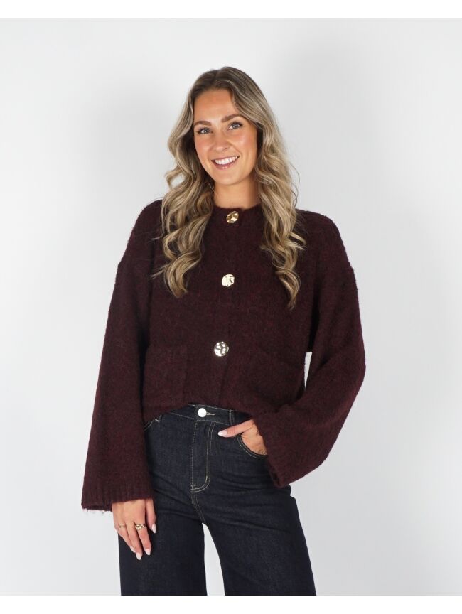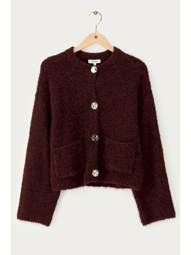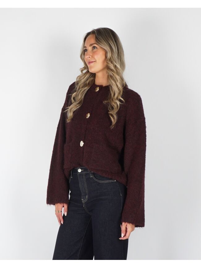 BOUCLE VEST MET KNOPEN BRUIN/BORDEAUX
