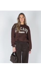 Bonjour comfort! De bruine sweater met “Le café Paris” print brengt dat warme, knusse Paris-gevoel in jouw daily look. De zachte binnenkant en relaxte fit maken het kleding item ideaal voor chill days en coffee dates. Combineer met een wide leg jeans of flowy rok voor that effortless vibe. Celebrate the little moments – just like a café au lait in the zon!
