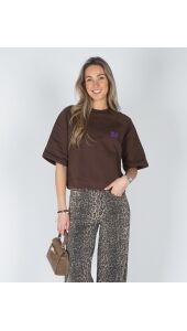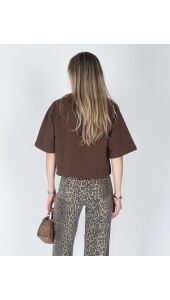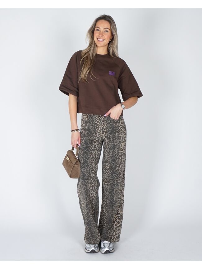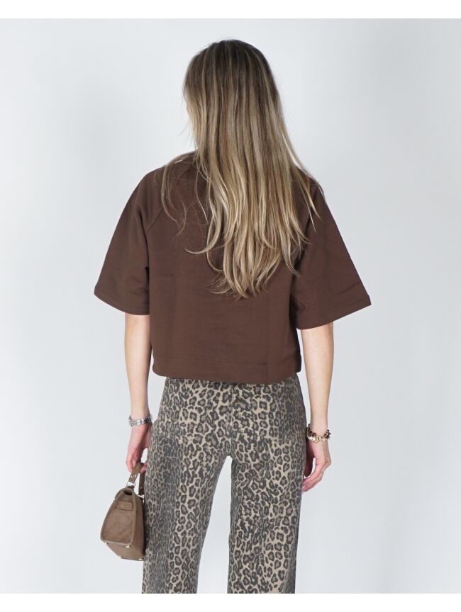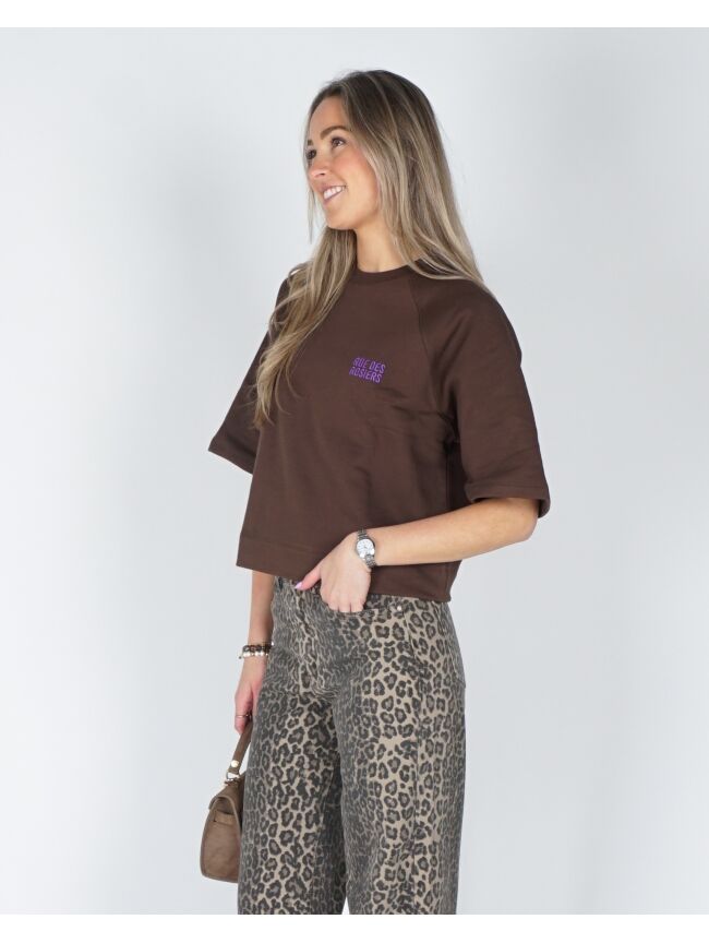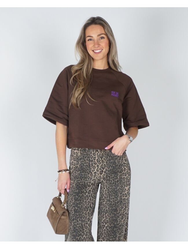 DONKERBRUINE SWEATER MET KORTE MOUWEN