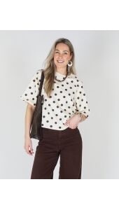 Laat je omarmen door de speelse charme van stippen en voel de vreugde van een zonnige dag. Deze top is perfect voor een casual brunch met vrienden of een ontspannen dagje uit. De luchtige stof en het comfortabele ontwerp maken het een veelzijdige keuze voor elke gelegenheid. Combineer hem met een lichte jeans en je favoriete sneakers voor een moeiteloze, trendy look. Deze top is niet alleen een stijl statement, maar ook een herinnering aan de kleine momenten die het leven bijzonder maken. Ideaal als cadeau voor jezelf of een dierbare.