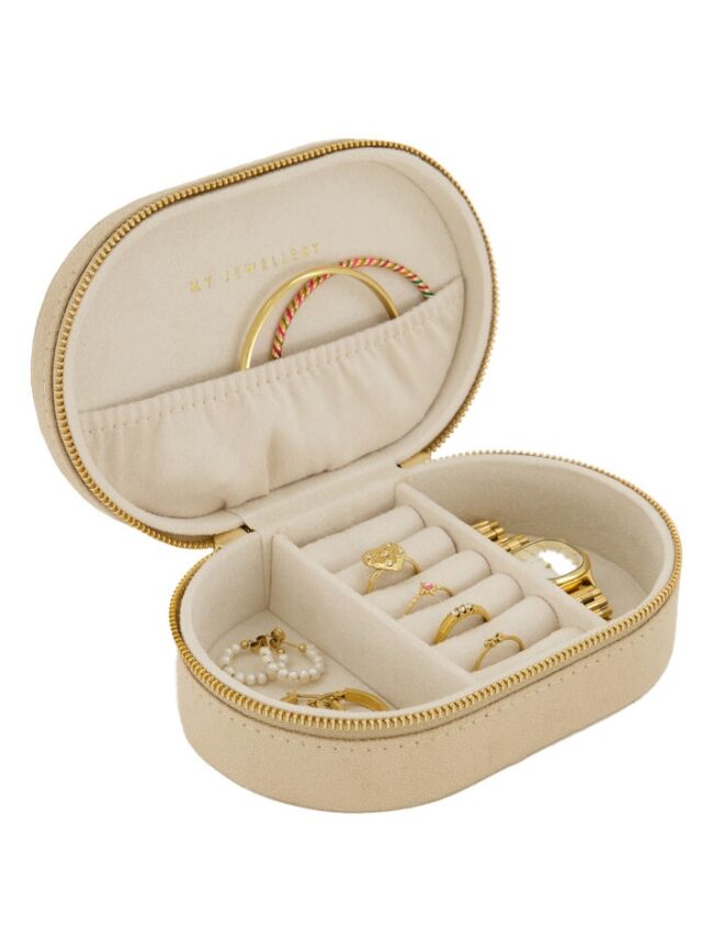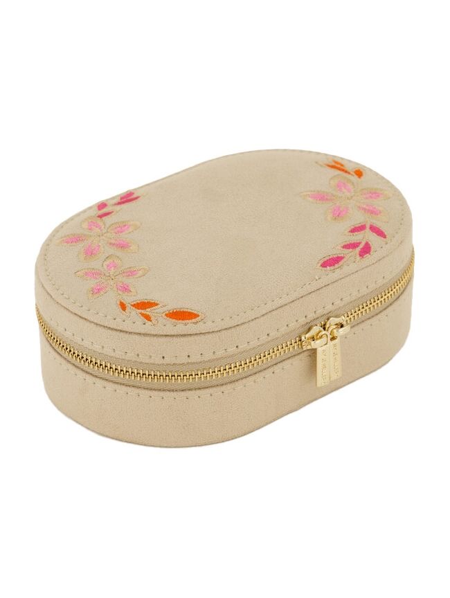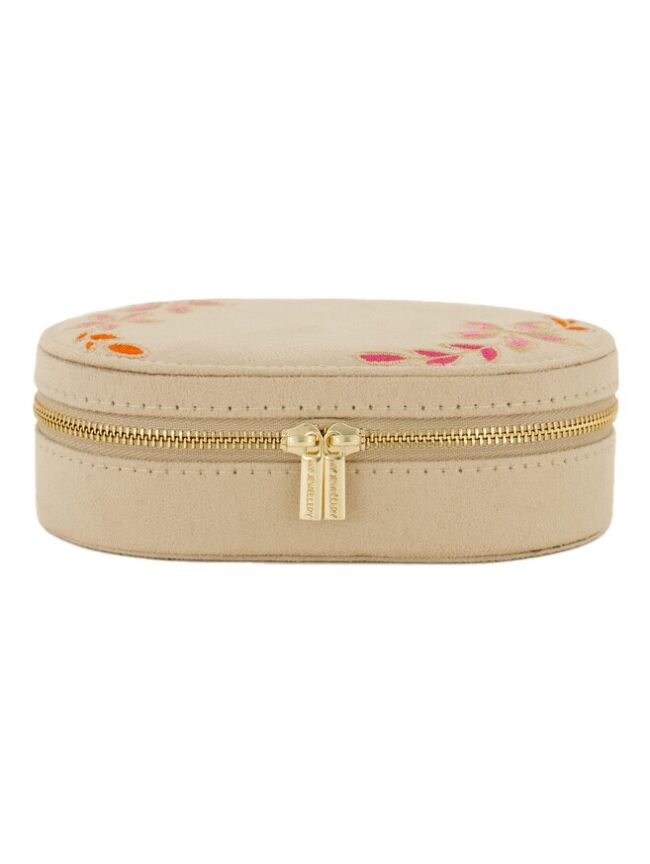 Ben jij klaar om nieuwe herinneringen te maken op jouw favoriete reis? Ga op ontdekking en vier het leven iedere dag. Dit prachtige sieraden doosje heeft een beige velvet kleur gecombineerd met kleurrijke bloemen die zorgen voor een speelse touch. Neem dit accessoire overal mee naar toe om jouw sieraden te beschermen. Wij zijn helemaal fan van deze sieraden organizer, jij ook?