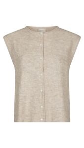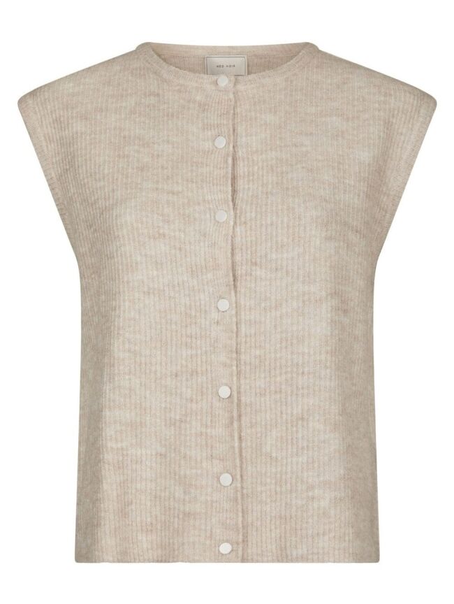 Dit gebreide vest van Neo Noir heeft een zachte, gemêleerde structuur en een tijdloos ontwerp. De knoopsluiting en geribde details geven het vest een klassieke en stijlvolle uitstraling. Een comfortabel en veelzijdig item dat moeiteloos te combineren is met elke outfit.