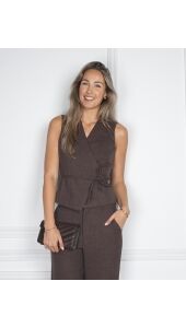 Dit bruine gilet van Neo Noir is dé finishing touch voor je outfit! Met een subtiel touwtje als sluiting geef je je look een speels, casual detail. Gemaakt van polyester, rayon en elastaan, voelt het heerlijk aan en behoudt het zijn vorm. Combineer met de bijpassende broek of blazer voor die effortless chic vibe.