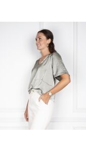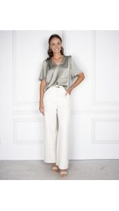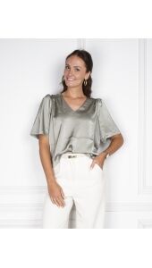 De Blouse Largo van Neo Noir is een stijlvolle blouse met een V-hals en korte mouwen en schoudervullingen. De regular pasvorm zorgt voor een comfortabel en elegant silhouet. De blouse is gemaakt van een mooie zware satijnkwaliteit. Het effen ontwerp maakt het een veelzijdig kledingstuk, ideaal voor diverse gelegenheden.