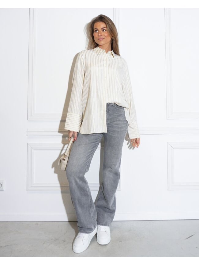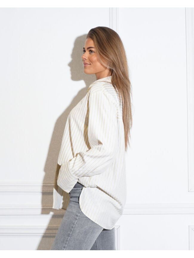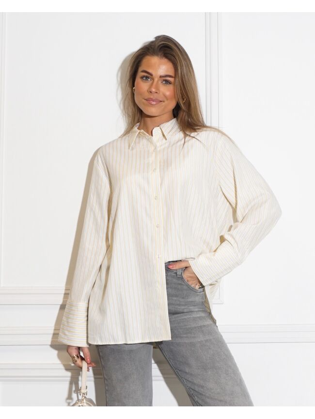 Ben je op zoek naar een stijlvolle look met een trendy twist? Onze gestreepte gele oversized blouse is jouw go-to item. Met zijn relaxte fit, strepen en licht gele tint, straalt deze blouse pure confidence uit. Gemaakt van een luchtige, soepelvallende stof, perfect om casual te dragen met een jeans of chic te combineren met een tailored pantalon.
