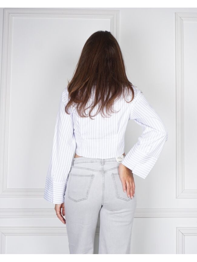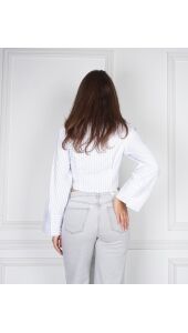 Blouse Frost Stripe van Neo Noir valt cropped en is getailleerd. De mouwen vallen wijd uit en hebben brede manchetten. Style op je favoriete high waisted jeans voor de perfecte everyday look!