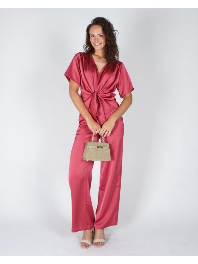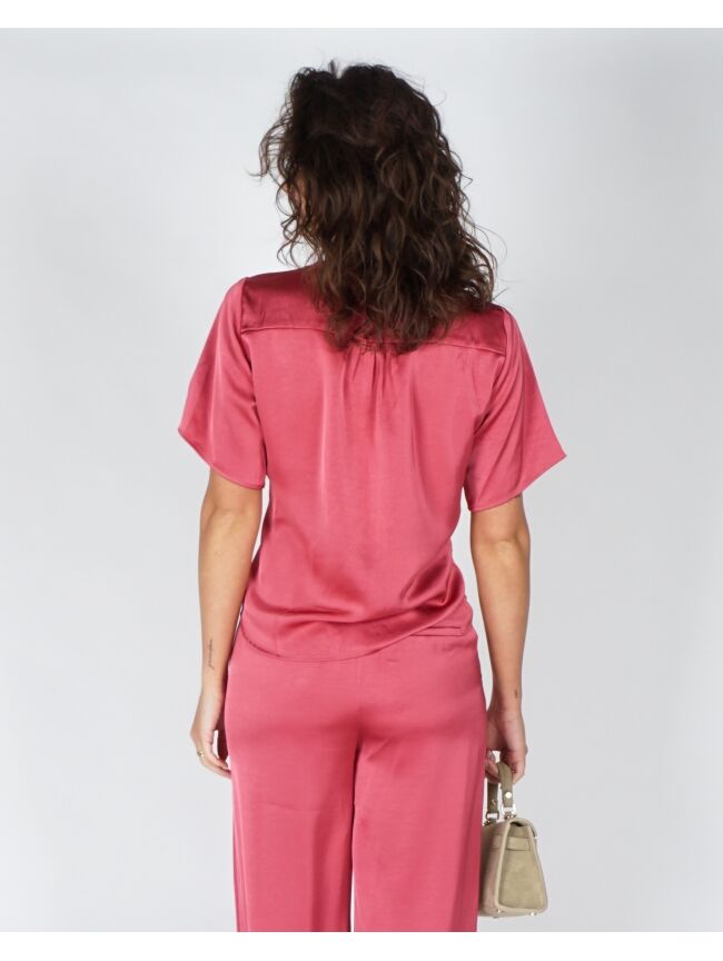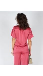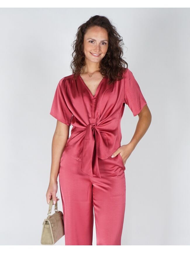 Blouse Casadia van Neo Noir heeft een V-hals, korte mouwen en een regular, losse pasvorm. De effen stof valt soepel en sluit met een strikdetail aan de voorkant. Plooien bij het rugpand geven extra ruimte. Combineer met de bijpassende pantalon voor een nette uitstraling.