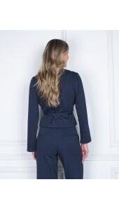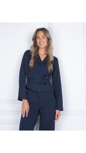 Deze blouse combineert vrouwelijkheid en stijl in één moeiteloze look. De diepe blauwe kleur geeft 'm een chique vibe, terwijl de strik in de taille je figuur mooi accentueert. Licht getailleerd, maar je kunt 'm zelf strakker knopen voor extra shape. Super mooi als set met de Nathalie pants. Samen een moderne, elegante outfit die je van werk tot weekend draagt.
