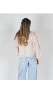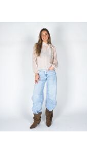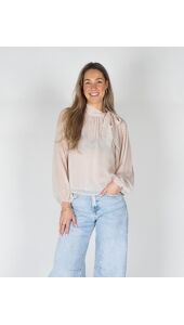 Deze ecru blouse met subtiele stippen heeft een elegante en vrouwelijke uitstraling. Het strikje bij de hals zorgt voor een speels en chic detail. De blouse is perfect te combineren met zowel een nette pantalon als een casual jeans en is geschikt voor elke gelegenheid.