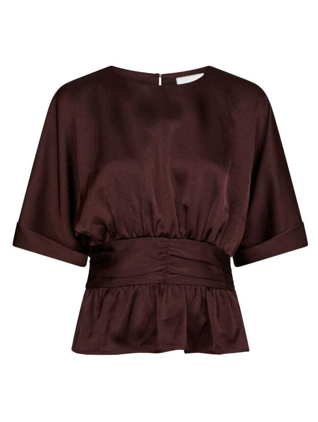 In de diepe kleur Burgundy krijgt de blouse een rijke en warme uitstraling die eenvoudig te combineren is met zwart, donker denim of zachte neutrale tinten.