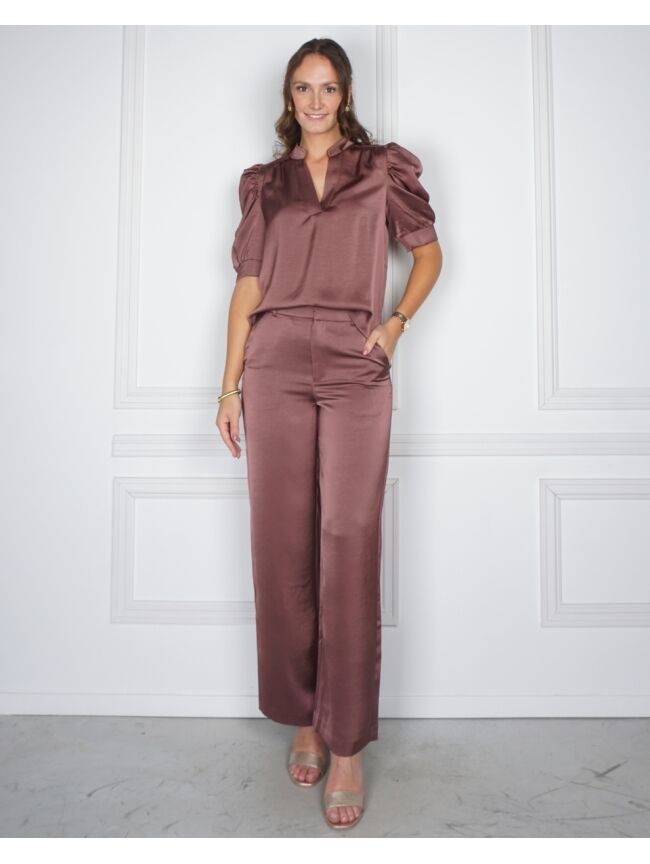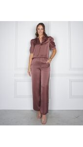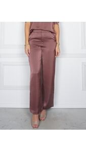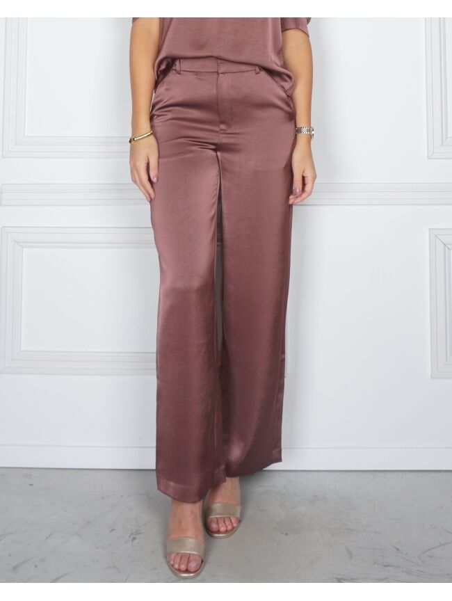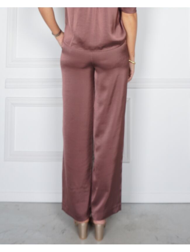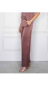Deze satijnenlook pantalon in een roze tint is een echte must-have voor een stijlvolle look! Gemaakt van polyester en elastaan, heeft hij een prachtige glans en zit hij supercomfortabel. Leuk te combineren een mooie blouse voor een chique look. Stijl je look af met je favoriete sieraden